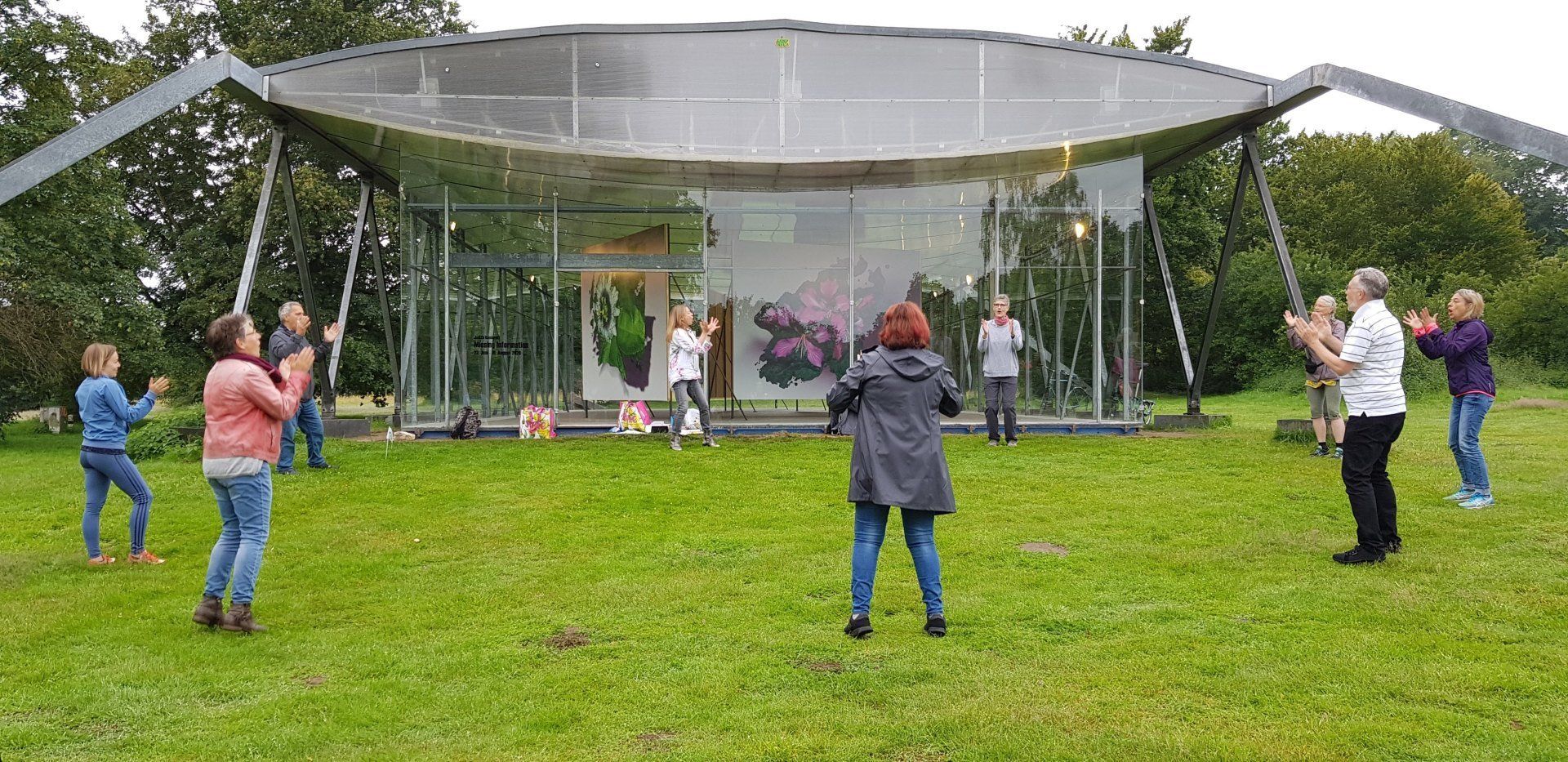 Bitte bei der Wahl des Schuhe beachten: das morgendliche Lachyoga wird auf einer Wiese (Rasen) praktiziert und in den Morgenstunden kann diese Wiese noch feucht sein.