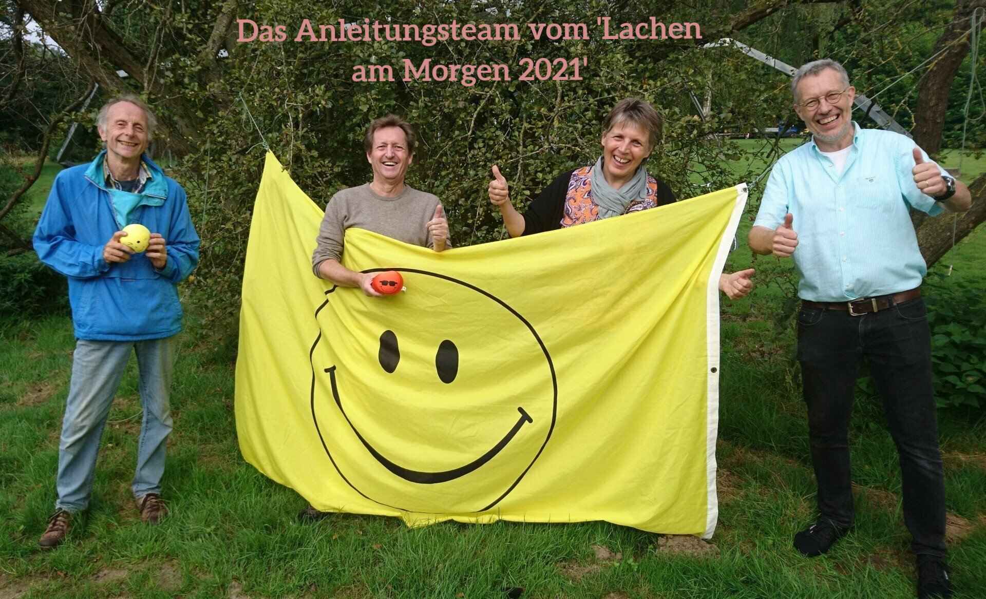 Die Anleitung übernahmen im Jahr 2022 die Lachyoga-Profis (s.u. von li. nach re.)