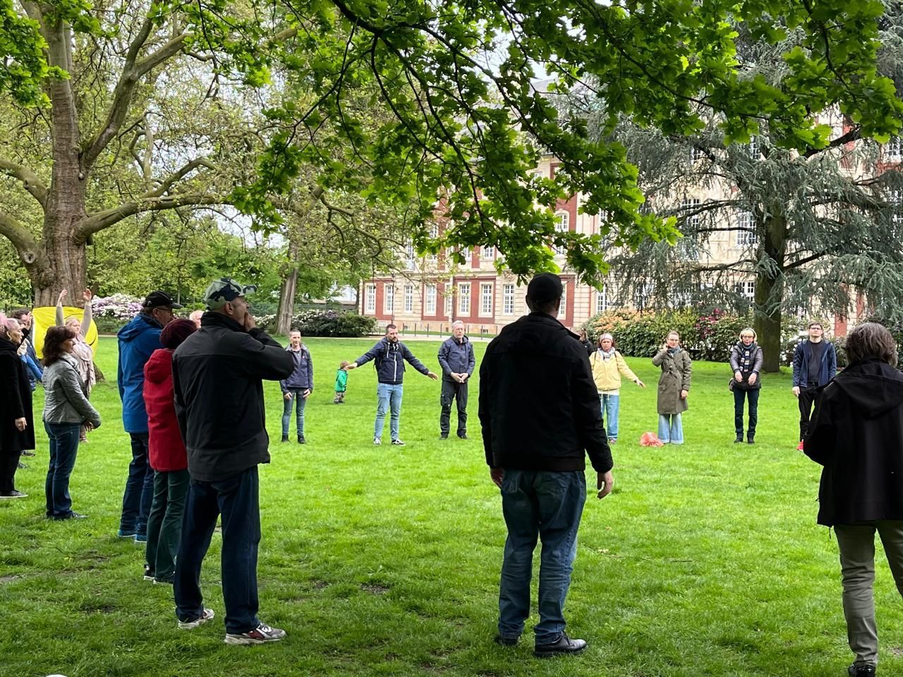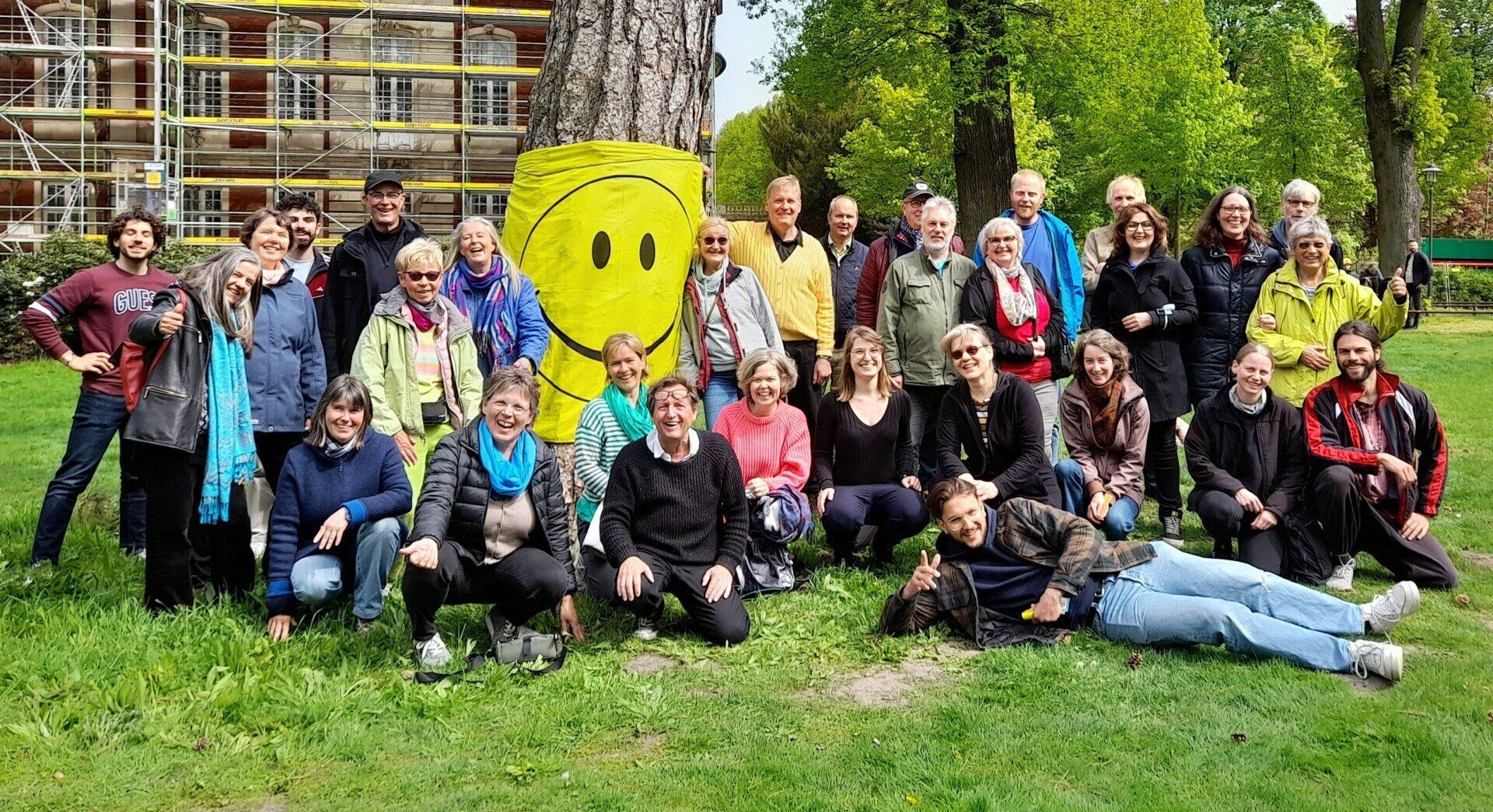 Das war unser Weltlachtag am 01.05.2022 in Münster: hier ein Teil der ca. 50 lachbegeisterten Teilnehmer:innen.